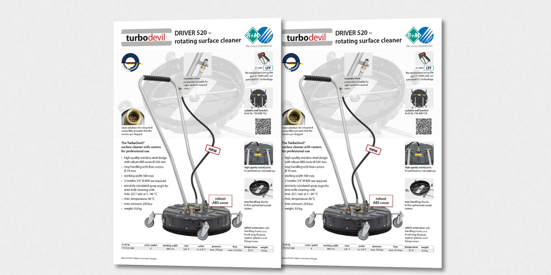The new professional surface cleaner, featuring a robust ABS cover, ensures comprehensive cleaning at pressures of up to 250 bar.