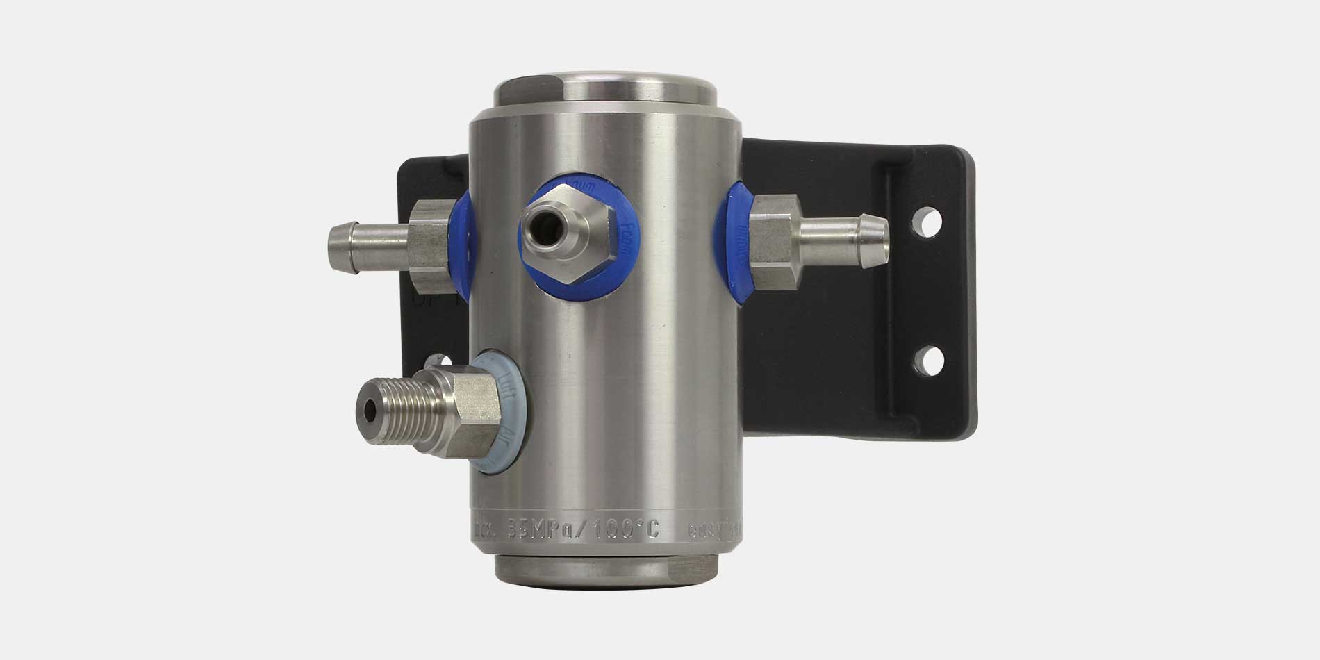 The stainless steel injector features three pairs of injector and nozzle in one housing which can be configured independently. This enables numerous metering and foam applications. Since each pair of nozzles has its own chemical inlet, different chemicals can also be mixed in different ratios. In the low-pressure range, flow rates of up to 20 l/min can be realised. This is why, the injector is suitable for quick and easy filling of scrubber dryer while up to 5 l/min of cleaning agent can be added. In the high-pressure range, water quantities of more than 100 l/min can be realised without any problems. For example, fixed or mobile foam arches, such as required for cleaning the inside of tunnels, can be operated with a large number of foam nozzles. In order to produce large foam quantities in the low-pressure range, the injector is provided with an compressed air connection.
