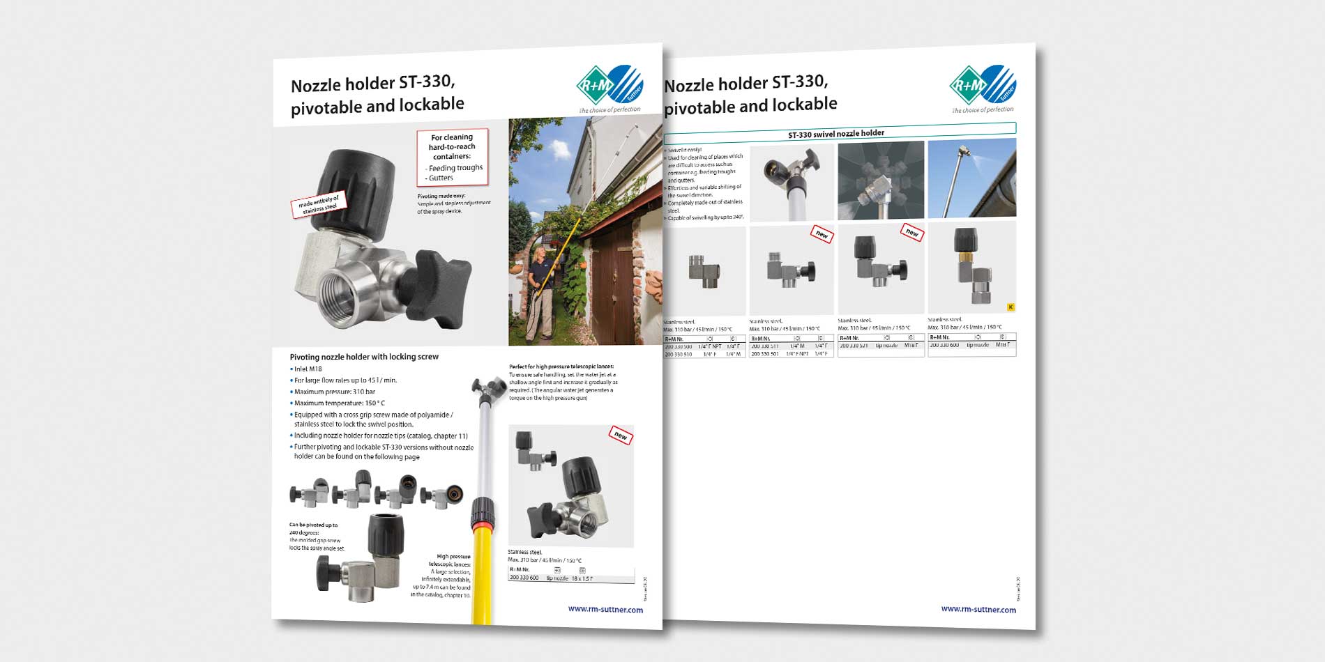 On our flyer you will find further information on pivoting and lockable ST-330 versions with valuable tips for high-pressure cleaning, even at great heights.