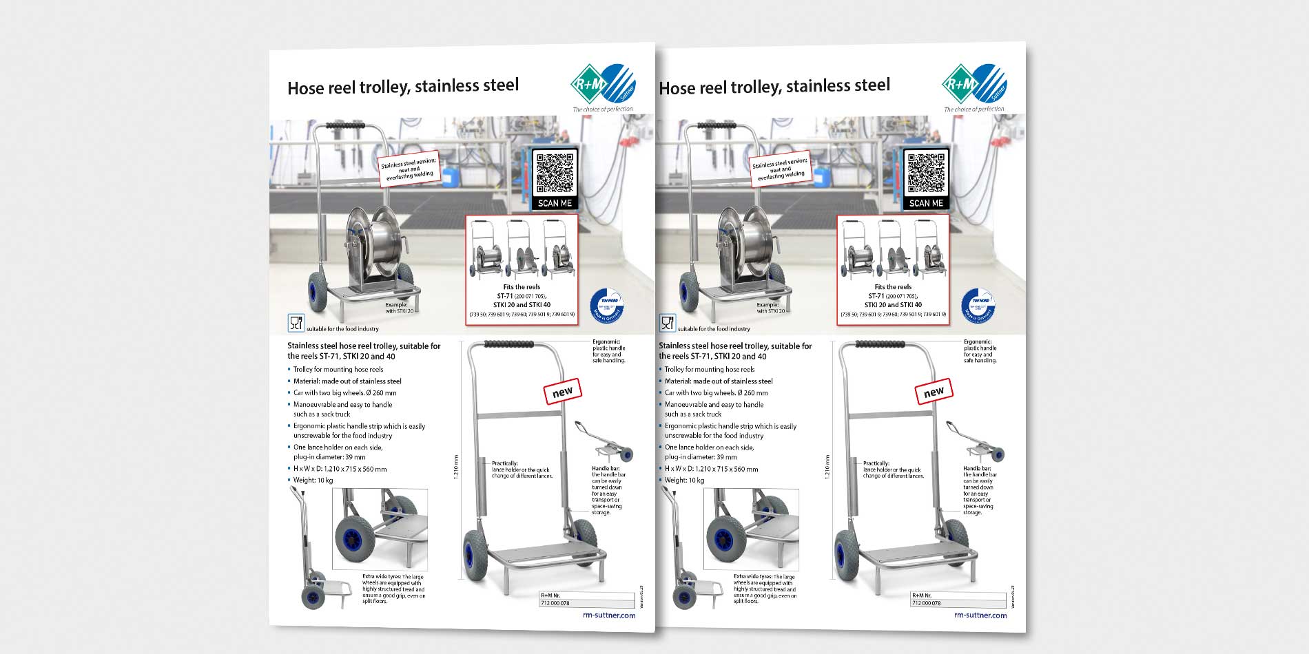 The brand new hose reel trolley made of stainless steel offers you space for hose reels of the ST-71, STKI 20 and STKI 40 series.