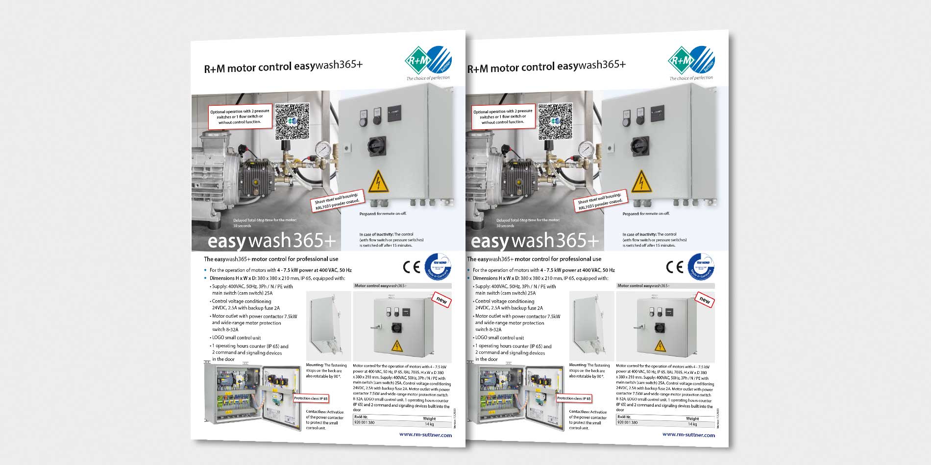 With our R+M motor control easywash365 + we offer you a professional solution for controlling motors with pumps.