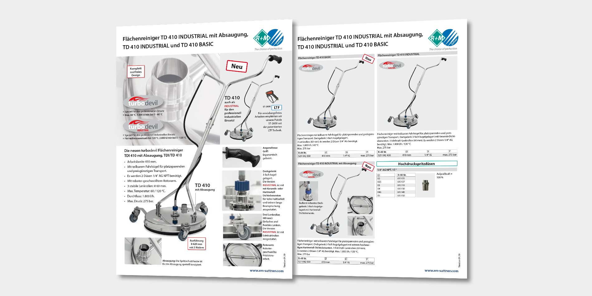 Flächenreiniger turbodevil 410 mit Absaugung, TD 410 INDUSTRIAL und TD 410 BASIC