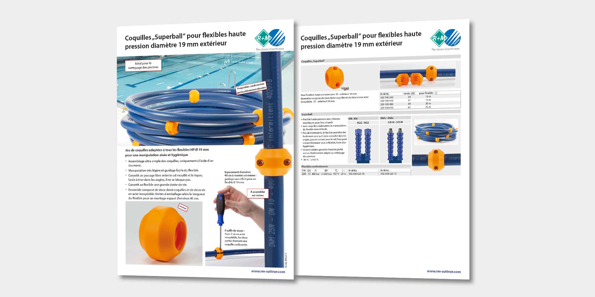 Vous trouverez toutes les informations détaillées sur nos nouvelles coquilles “Superball” ainsi que sur nos flexibles confectionnés de 25 mètres en consultant la fiche produit ci-jointe.