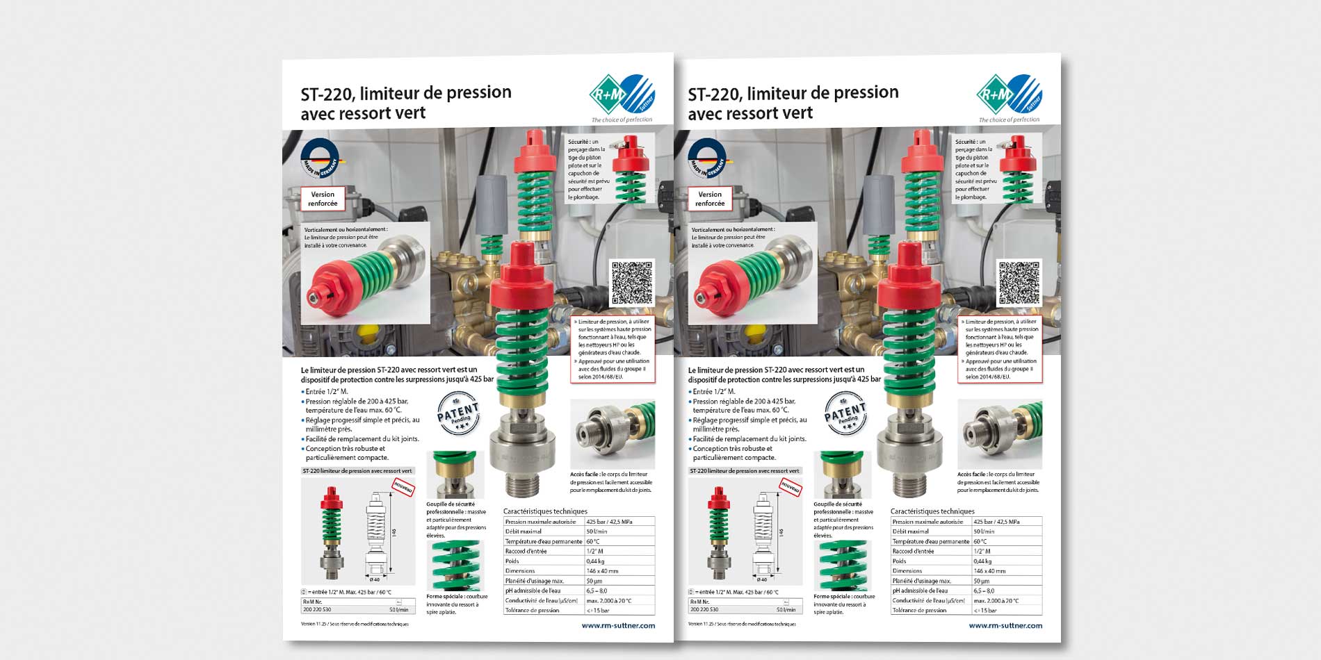 Nous avons développé un nouveau ressort de compression (de couleur verte) pour un réglage plus précis et plus progressif à partir du seuil de pression bas jusqu’au seuil de pression le plus élevé de 425 bar.