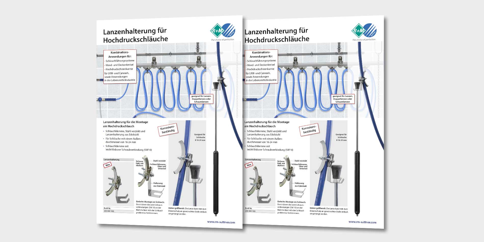 Ob Schaumlanze, Einzel- oder Doppellanze, die Edelstahlhalterung kann durch eine einfache Klemmmontage am Hochdruckschlauch die Reinigungsarbeiten im LKW-und Carwash-Sektor oder in der lebensmittelverarbeitenden Industrie viel einfacher und speditiv gestalten.