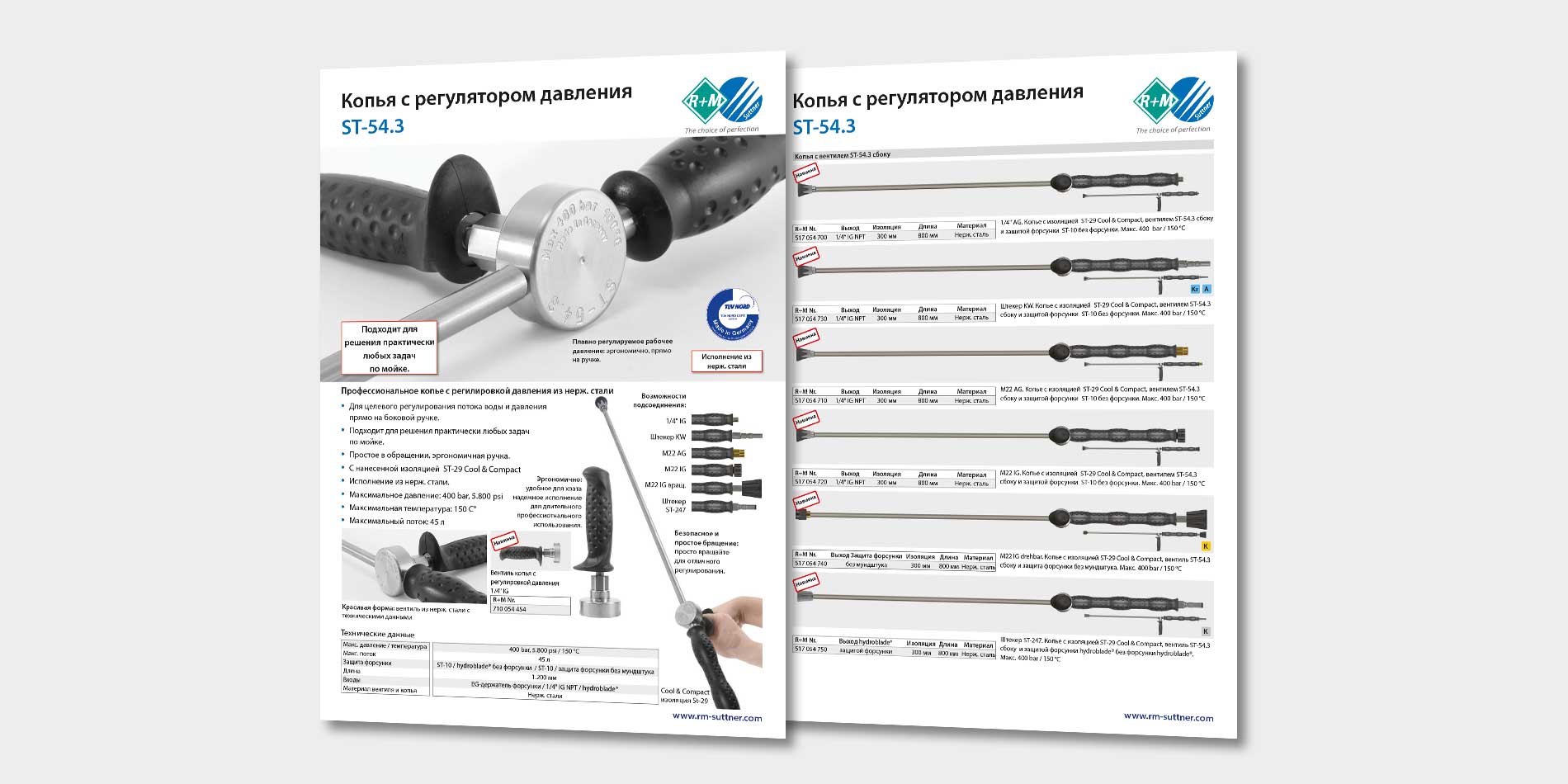 С помощью нового регулятора давления из нерж. стали ST-54.3 легким поворотом эргономичной ручки регулируется давление и поток.