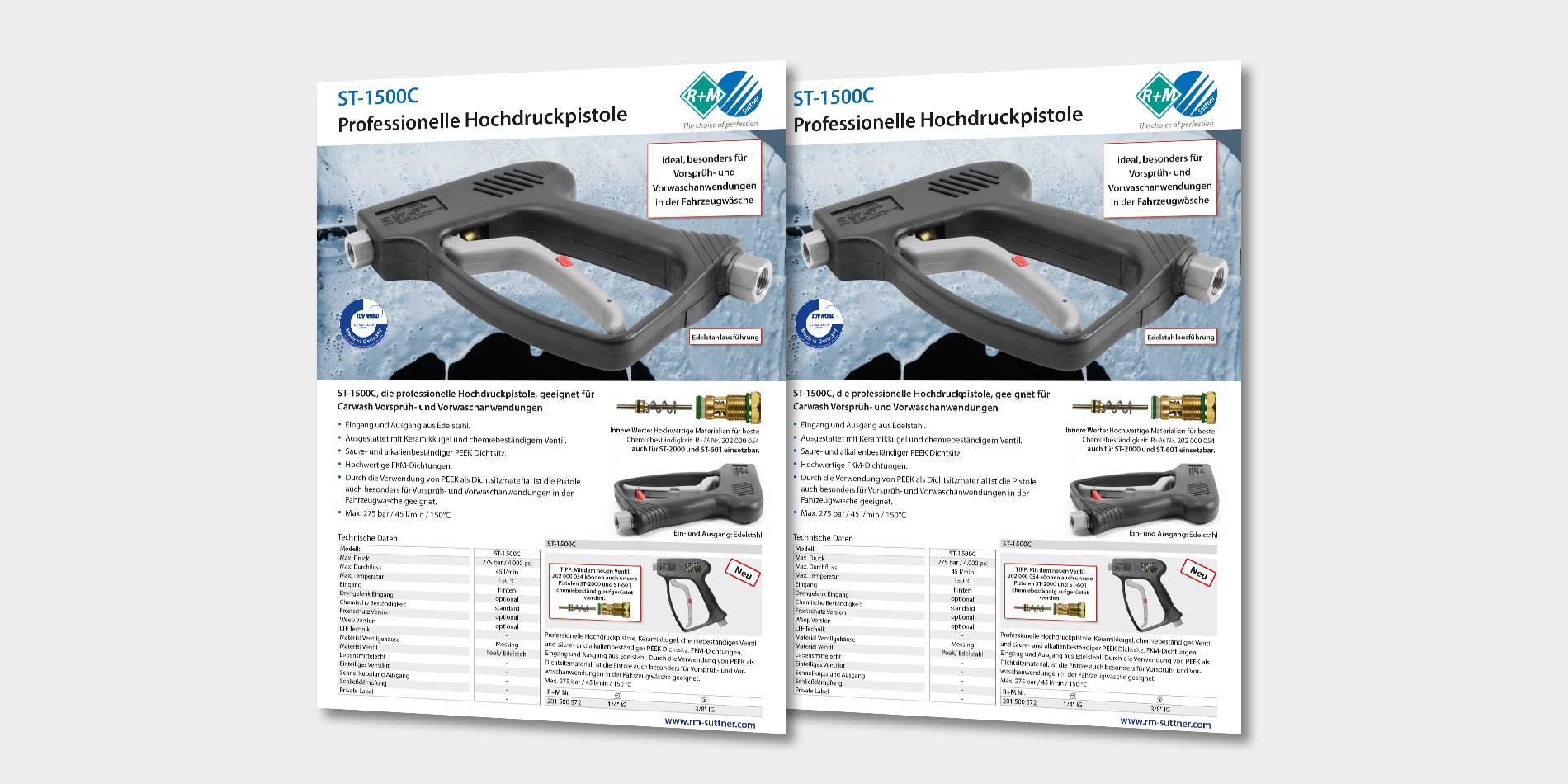 Durch die Verwendung von PEEK als Dichtsitzmaterial ist die Pistole besonders für Vorsprüh- und Vorwaschanwendungen in der Fahrzeugwäsche geeignet.